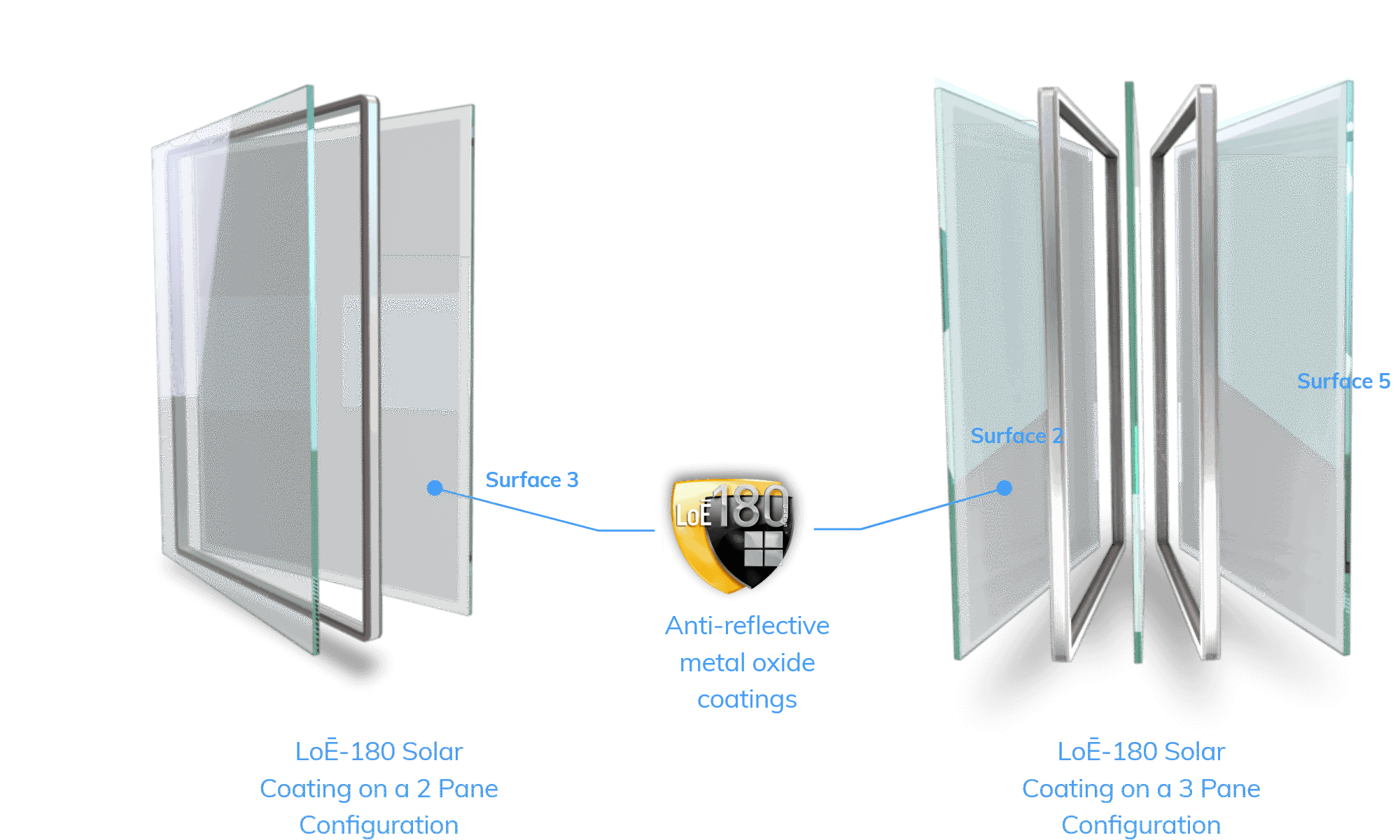 • Often paired with argon or krypton gas fills between panes.